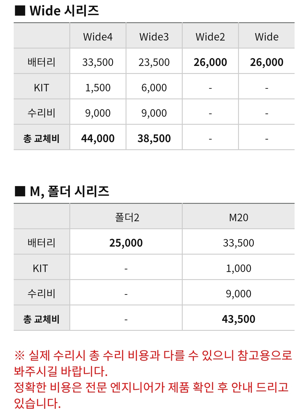 2020년 7월 기준. 실제 총비용은 의뢰시점에 따라 달라질 수 있다. 지역 고객센터에 전화해 재고확인과 예약 상담할 것.