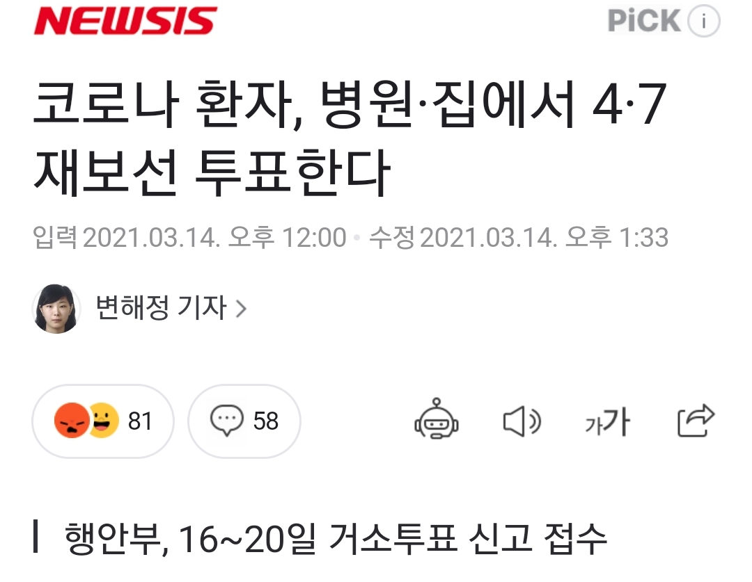 코로나 환자, 병원·집에서 4·7 재보선 투표한다