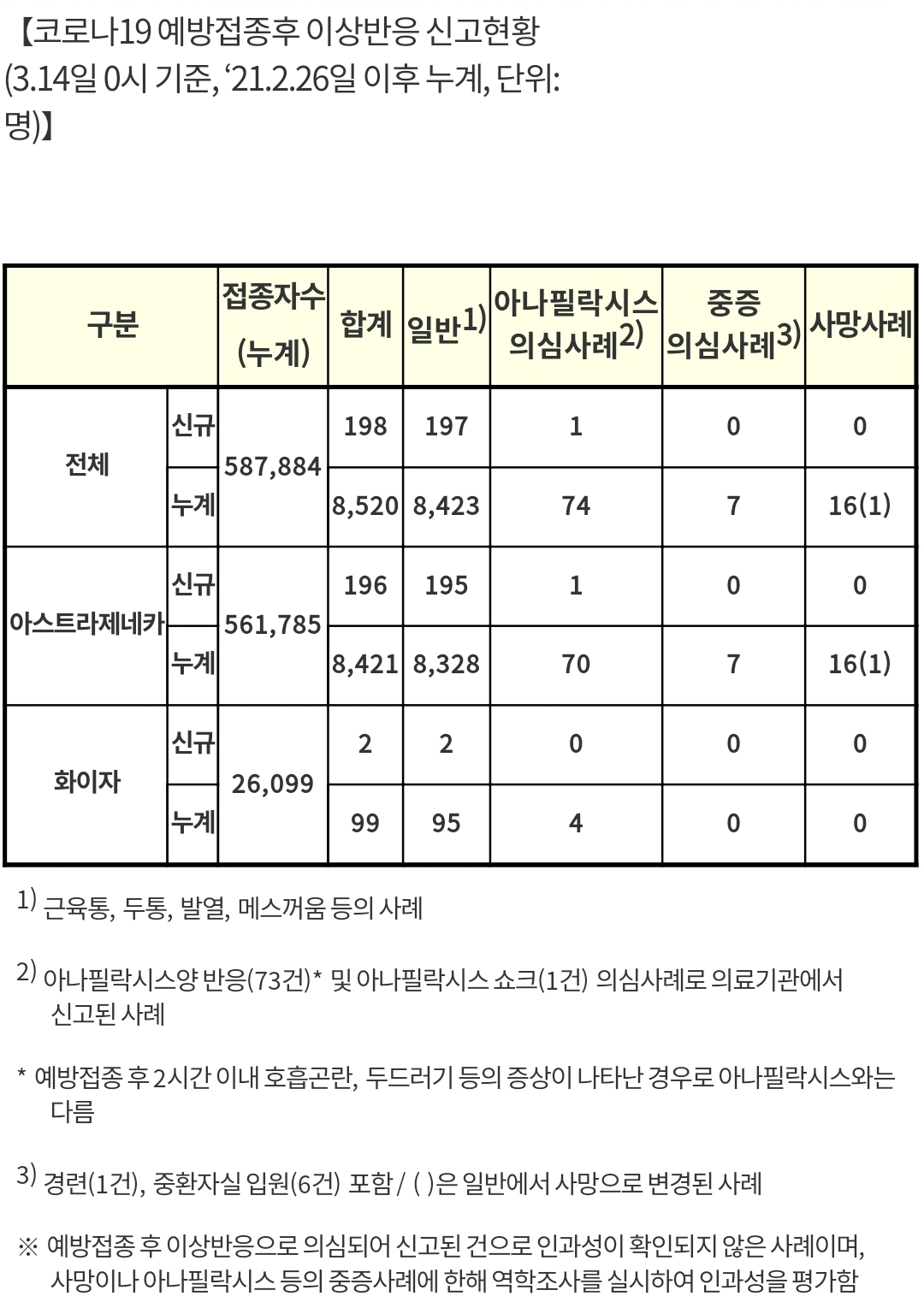 코로나19 집계(2021.3.14 0:00 기준), 각종 그래프, 백신접종 현황 본문