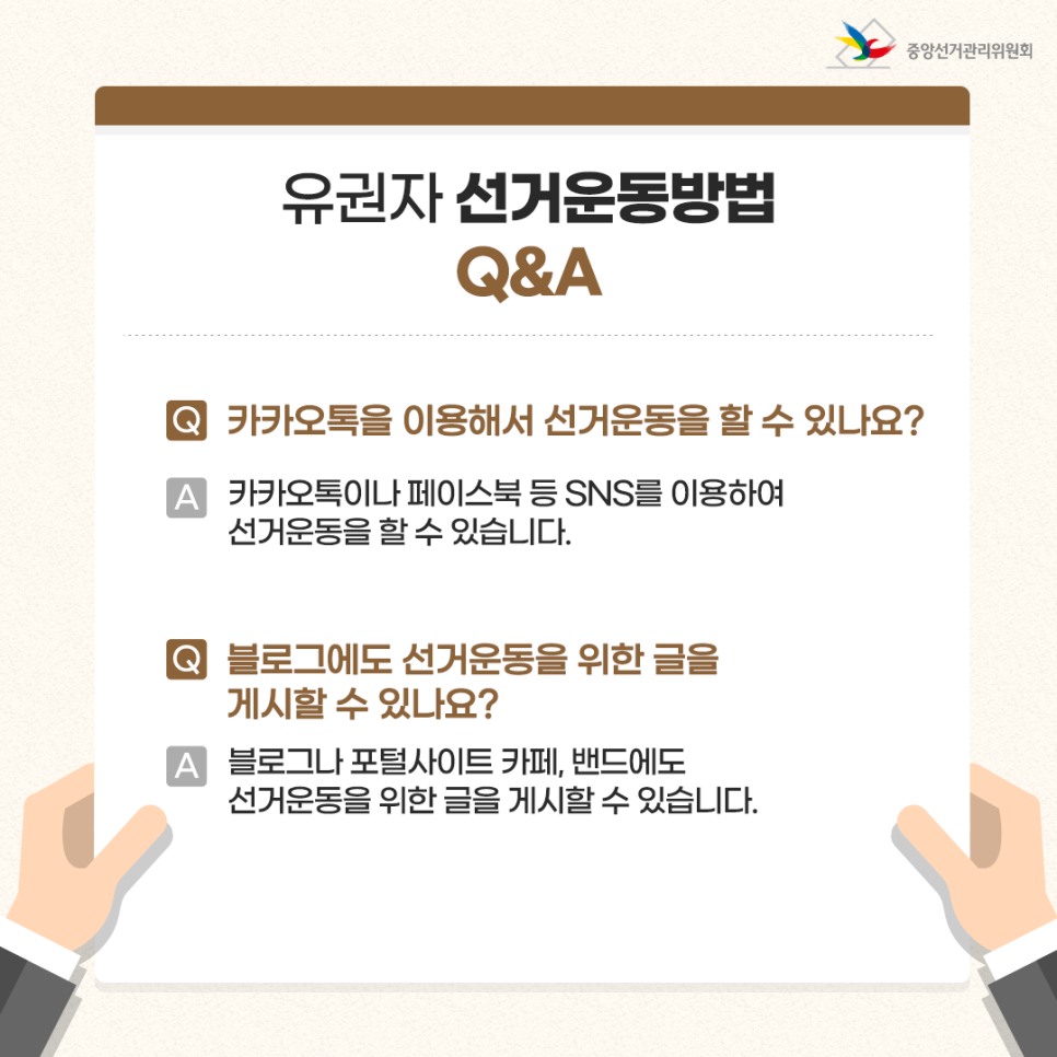 유권자의 온라인, 오프라인 선거운동에 대한 중앙선거관리위원회 안내물 본문