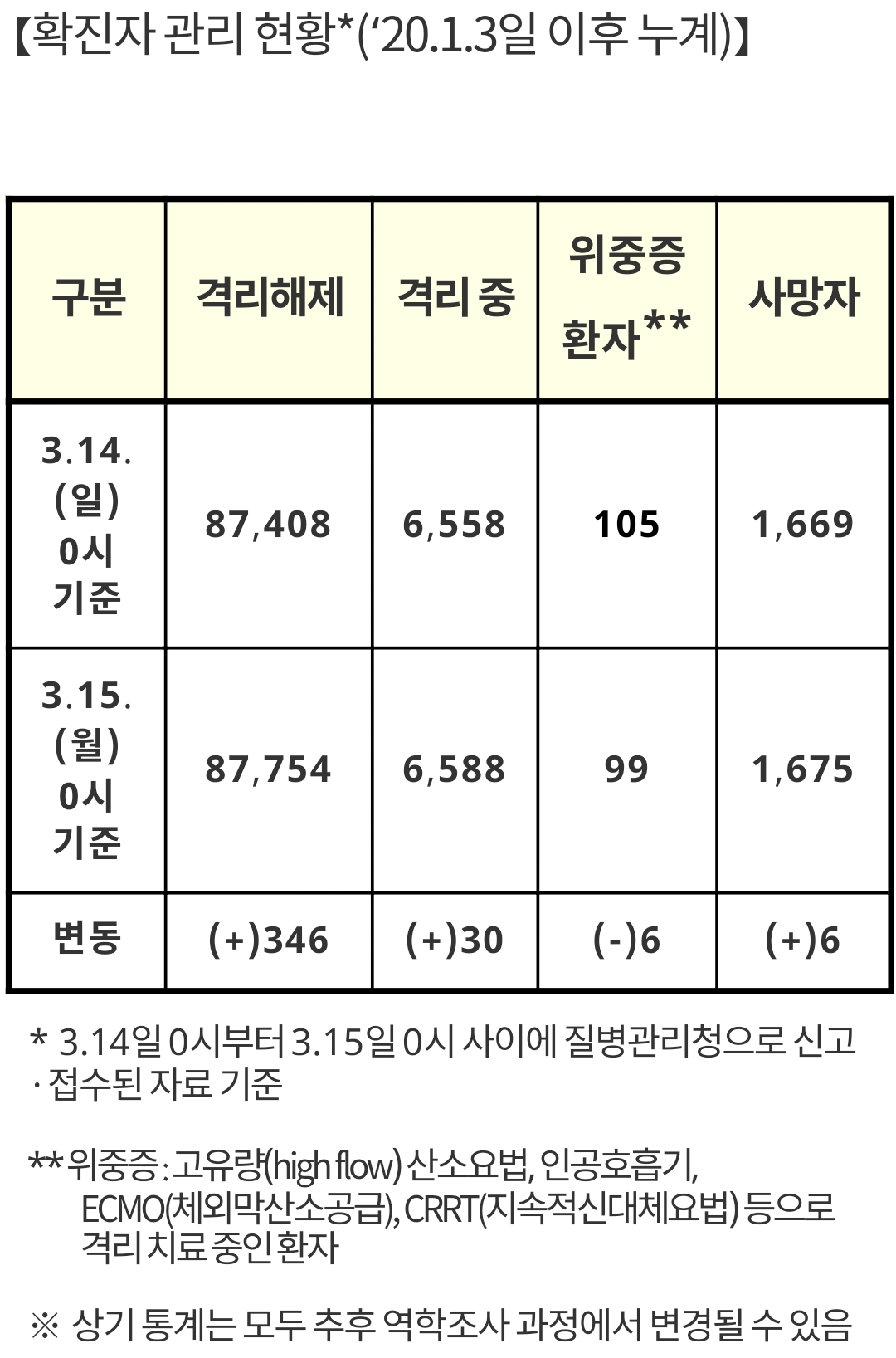 | 코로나19 집계 (2021.3.16 0:00 기준) / 수도권 및 비수도권 방역조치 요약표 등 (0) | 2021.03.16 |