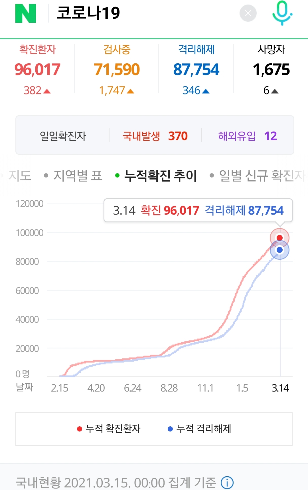 코로나19 집계(2021.3.15 0:00 기준) 본문