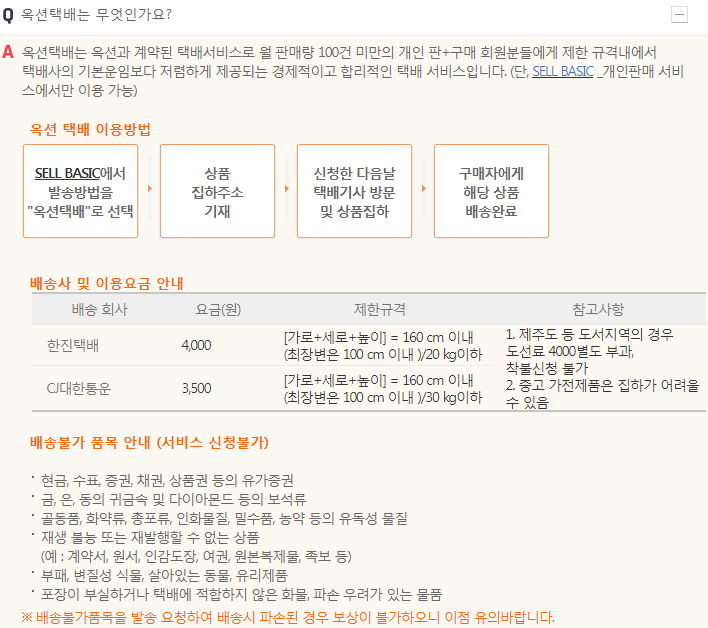 그리고, 이용할 수 없는 경우가 가끔 있어요. 예를 들어, 컴퓨터 모니터는 개인은 옥션택배로 발송할 수 없었어요. 전에 중고처분할 때 그걸 나중에 알아서 곤란했던 적이 있습니다. 물건을 올리는 카테고리도, 물건을 발송하는 회사 선택도 주의가 필요한 부분.