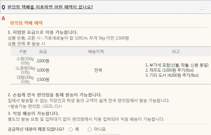 편의점택배가 무척 편합니다. 새벽과 밤에 이용할 수 있고, 값도 싸죠.