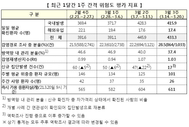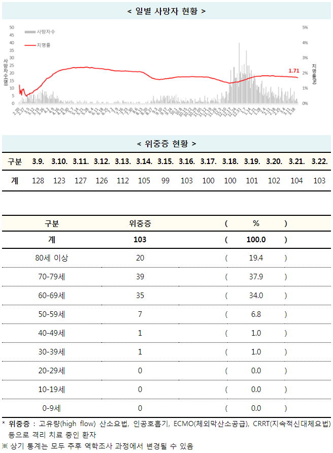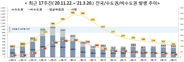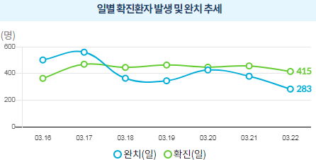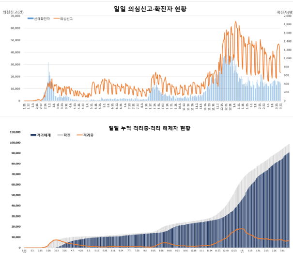 코로나19 집계(2021.3.22 0:00 기준)¶주간종합 그래프 본문