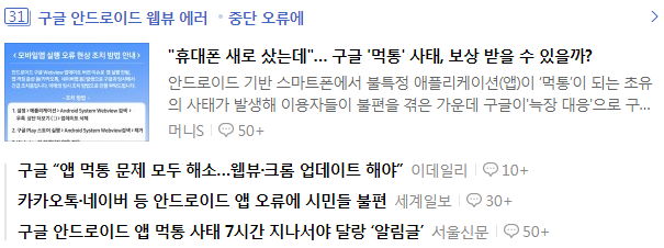 구글, 안드로이드 시스템 Webview (웹뷰) 업데이트(서드파티 앱크래시를 유발하는 버그 고침) 본문