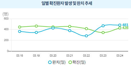 다시 4백명대입니다. 400내외에서 진동하는 양상이군요.