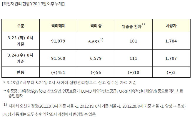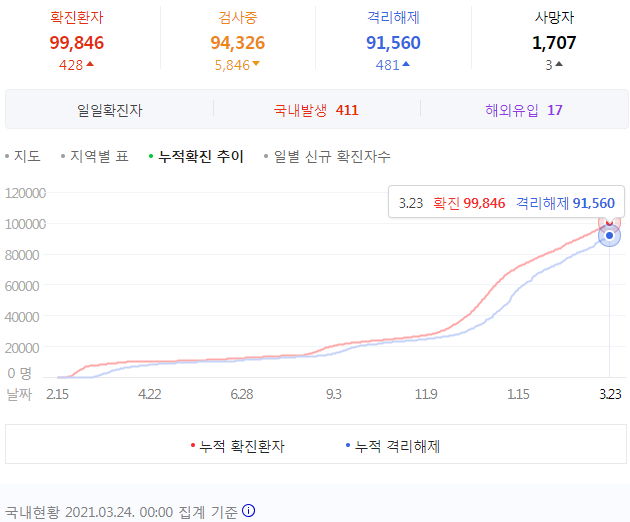 코로나19 집계(2021.3.24 0:00 기준) 본문