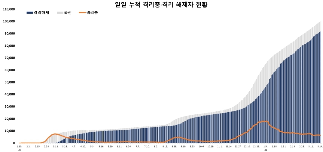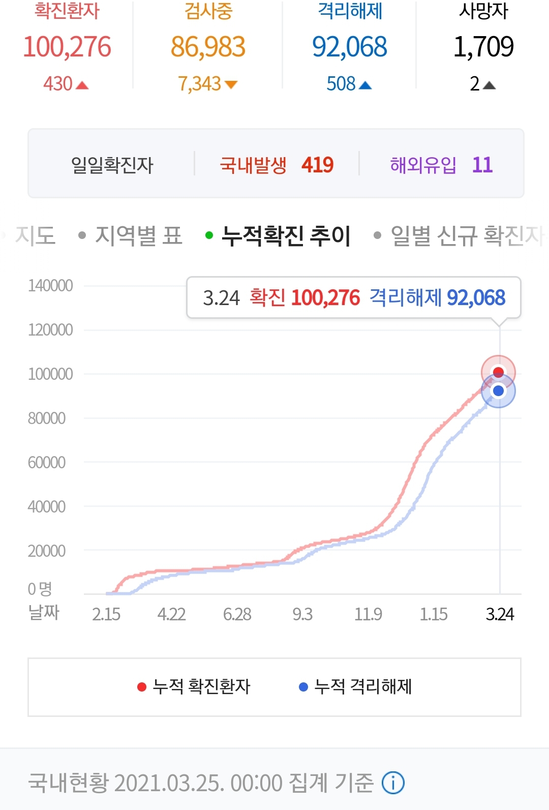 코로나19 집계(2021. 3. 25 0:00 기준)/:/ 거리두기, 백신접종 본문