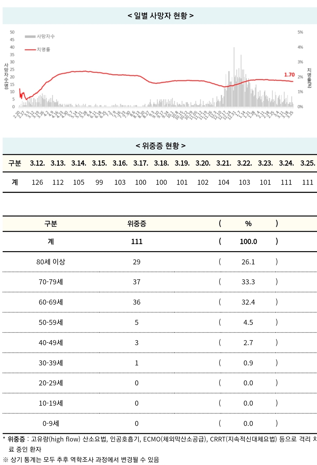 위중증(특수치료시설이 필요한) 환자는 111명으로 늘었습니다.