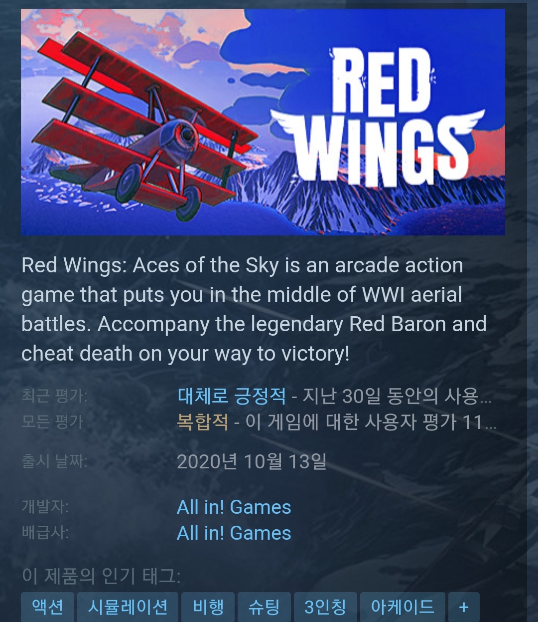 (스팀 무료 게임) Red Wings: Aces of the Sky 본문