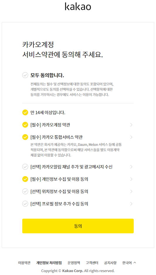 카카오(kakao.com) 계정 가입과정(2021.3) 본문