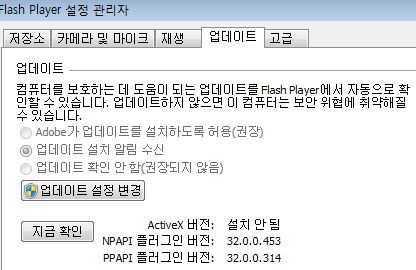 아직 플래시 플레이어가 깔려 있는 컴퓨터라면 이런 화면이 뜨고 있을 겁니다.
