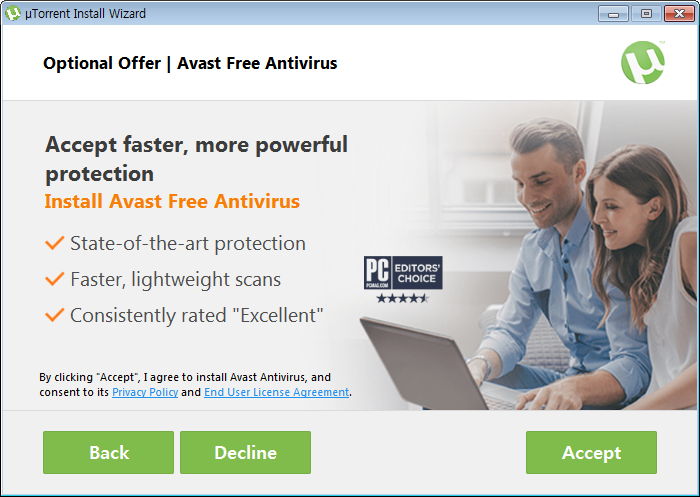 제휴프로그램-1. Decline 이 Avast를 설치하지 않고 uTorrent를 설치하는 버튼