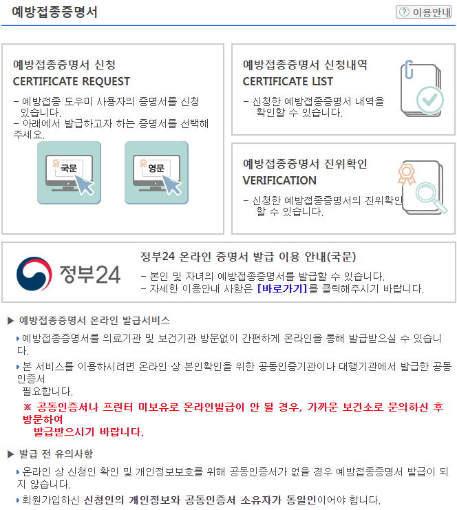 예방접종증명 | 민원안내 및 신청 | 민원24 | 정부24