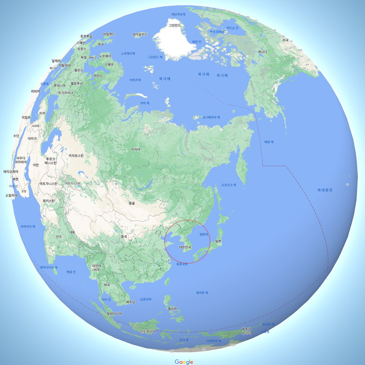 구글지도 지구본 뷰(메르카토르법말고 둥글게) 보기 본문