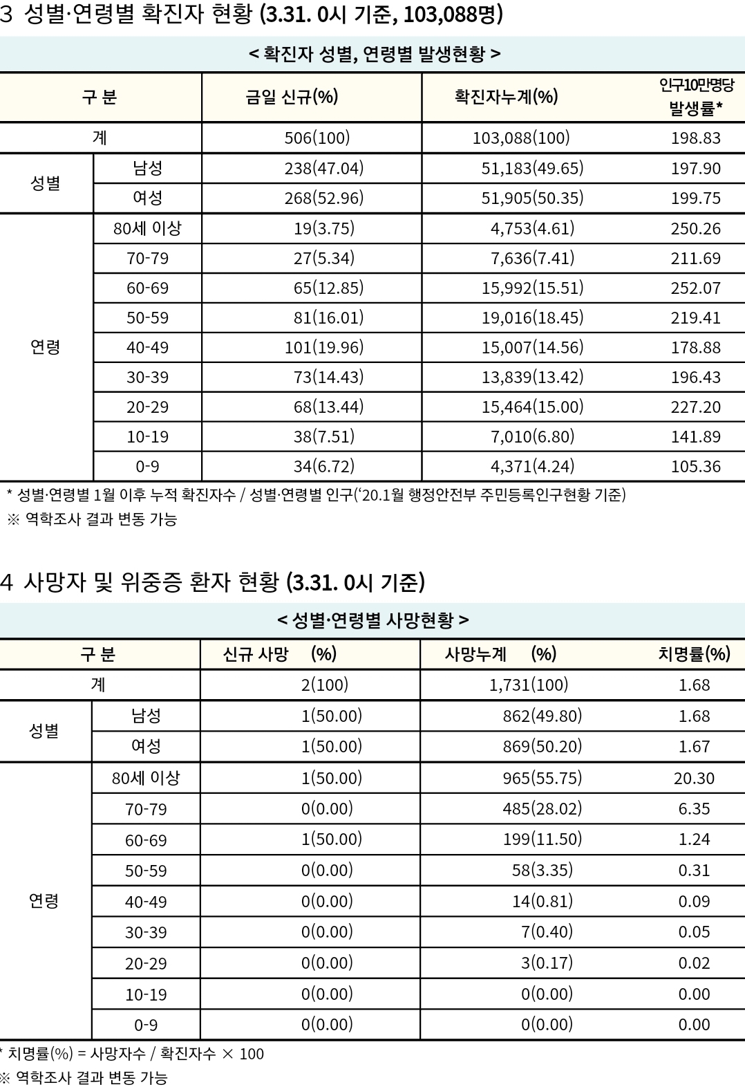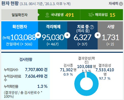 코로나19 집계(2021. 3. 31 0:00 기준) 본문