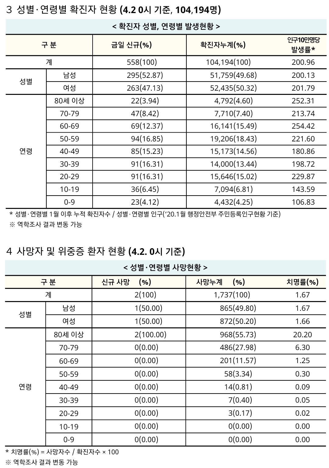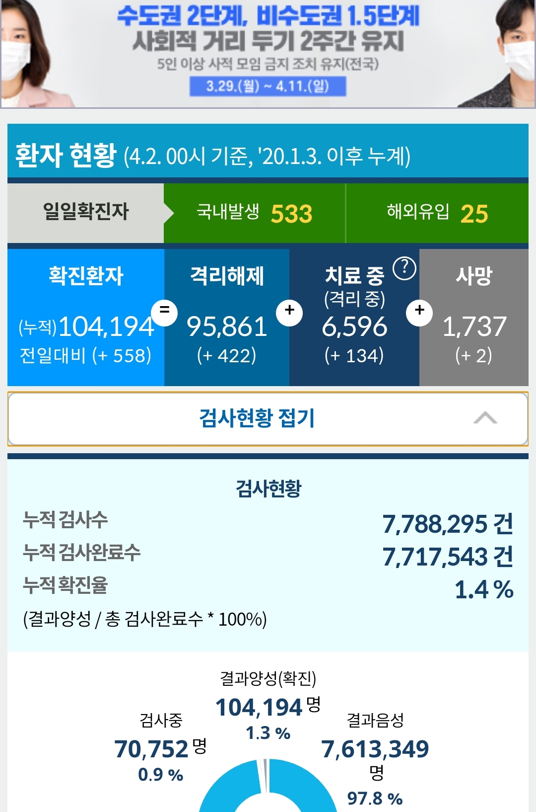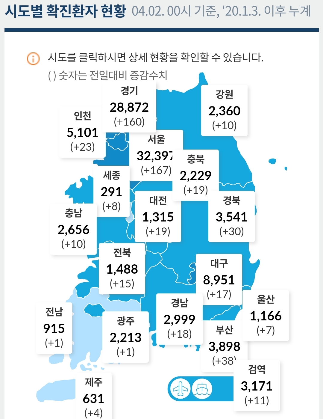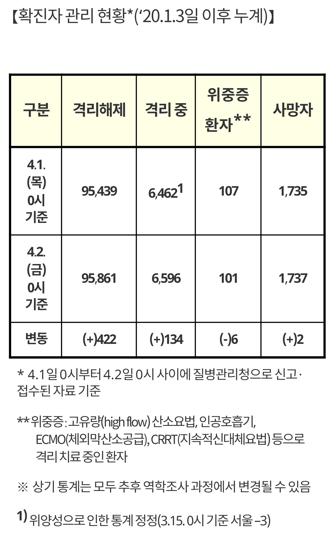 코로나19 집계(2021. 4. 2. 0:00 기준) 본문