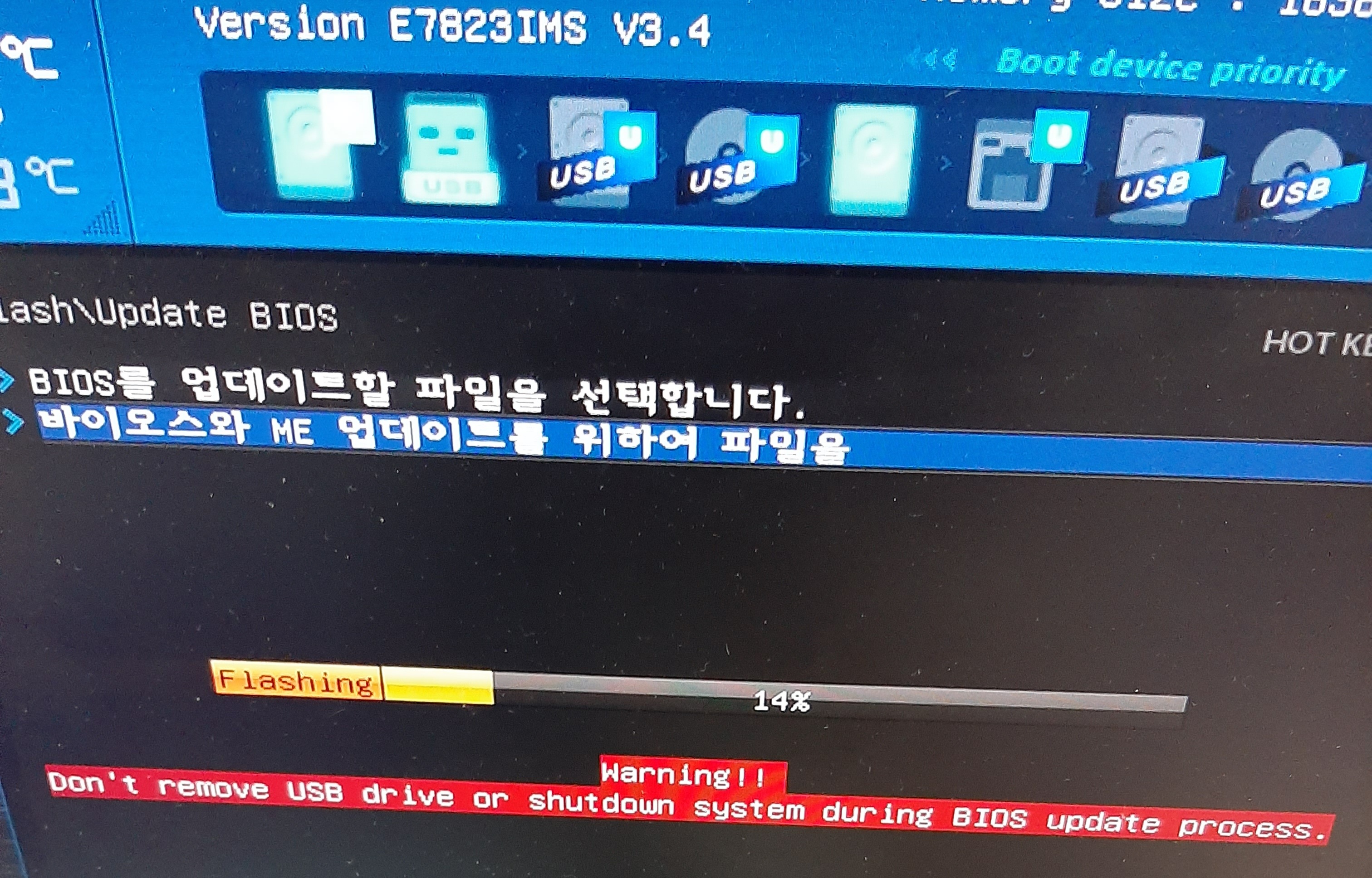 | 아래 설명의 출처는 MSI Korea (위 링크) 다. BIOS를 업데이트하는 방법 M-Flash로 최신 BIOS를 업데이트하는 방법을 아래에 소개해드립니다. 프로세스 시작 전 확인해야 할 것: 포맷된(FAT32) USB 플래시 드라이브 -참고: 용량이 64GB 이상인 USB 플래시 드라이브는 FAT32가 지원되지 않으므로 NTFS로 포맷하세요. 인터넷 연결이 가능한 PC 표준 충전기 USB 플래시 드라이브를 FAT32로 포맷하는 방법: 참고: 디스크를 포맷하면 모든 데이터가 지워지므로 작업 전에 필요한 데이터를 백업하세요. USB 플래시 드라이브를 꽂은 다음, 파일 탐색기를 열고 [내 PC]를 찾습니다. USB 플래시 드라이브를 우클릭한 다음 [포맷]을 선택합니다. bios update [파일 시스템]에서 [FAT32] 또는 [NTFS]를 선택하고 [시작]을 눌러 시작합니다. bios update BIOS 부팅 플래시 드라이브를 만드는 방법 MSI 공식 웹 사이트로 이동하여 마더보드를 검색하면 최신 BIOS를 다운로드할 수 있습니다. 예를 들어, 오른쪽 상단 검색창에 제품명(예: MPG Z390M GAMING EDGE AC)을 입력하고, [Enter]를 누릅니다 bios update "MPG Z390M GAMING EDGE AC"에 일치하는 결과가 표시되면 [Download]를 선택하여 다운로드 섹션으로 들어갑니다. bios update 필요한 BIOS 파일을 찾아 아래쪽 화살표를 클릭하여 다운로드합니다. bios update 다운로드한 파일을 우클릭한 다음 [압축 풀기]를 선택하여 압축된 폴더를 풉니다. bios update [압축 풀기]를 클릭합니다. bios update 파일을 USB 플래시 드라이브의 루트 폴더에 복사합니다. 이 단계를 완료하면 부팅 가능한 BIOS 장치가 성공적으로 만들어집니다. bios update 예: [7B50v15] 폴더 전체를 복사하여 USB 플래시 드라이브의 루트 폴더에 붙여넣습니다. 인식 오류를 방지하려면 USB 드라이브 내 다른 폴더에 파일을 넣지 마세요. bios update PC를 재시작하여 계속합니다. BIOS 업데이트 PC의 전원을 켜고 [Del] 키를 연타하여 BIOS 메뉴로 들어간 다음 [M-FLASH]를 선택하여 BIOS 업데이트 환경으로 들어갑니다. bios update [Yes]를 선택하여 M-FLASH 인터페이스로 들어갑니다. bios update 앞서 만든 USB 플래시 드라이브를 선택하고 BIOS 파일 폴더를 선택합니다. 예를 들어, [7B50v15] 버전 폴더를 선택합니다 bios update BIOS 파일을 클릭하고 [Enter] 키를 누릅니다. 예를 들어, [E7B50IMS.150]을 선택합니다 bios update [Yes]를 선택하여 BIOS 업데이트 프로세스를 시작합니다. bios update 참고: BIOS 업데이트 프로세스 중에 시스템의 전원을 끄거나 다시 시작하지 마세요. 절대 USB 플래시 드라이브를 제거하지 마세요. bios update 세션이 완료되면 시스템이 자동으로 다시 시작됩니다. [Del] 키를 연타하여 BIOS 메뉴로 다시 들어가 BIOS 버전을 확인합니다. bios update |