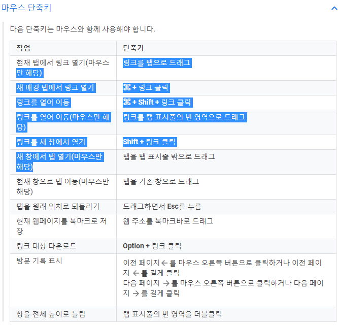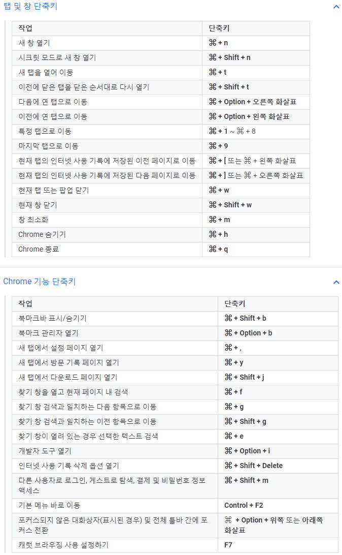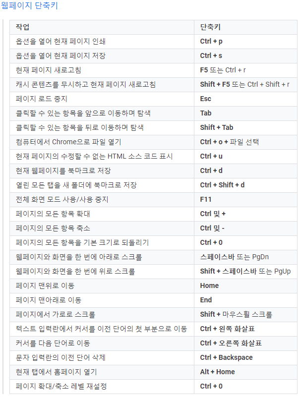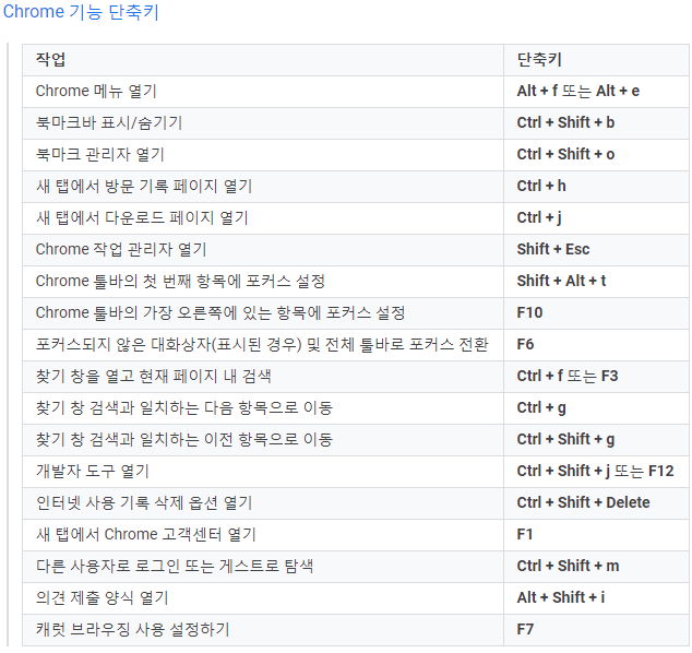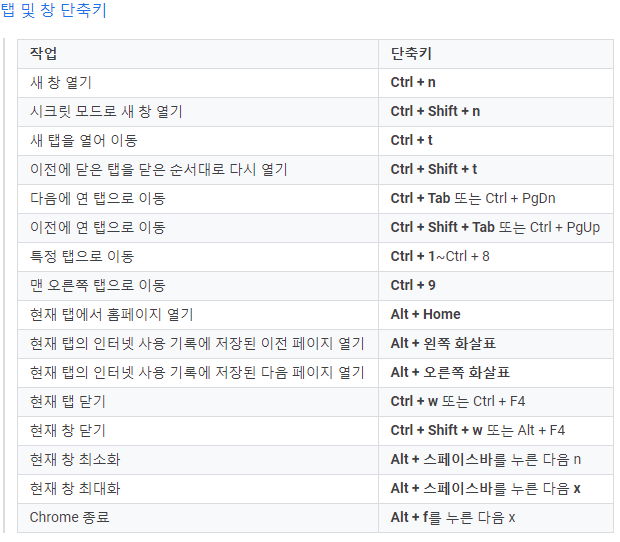 구글 크롬 웹브라우저 단축키 (2021.4) 본문