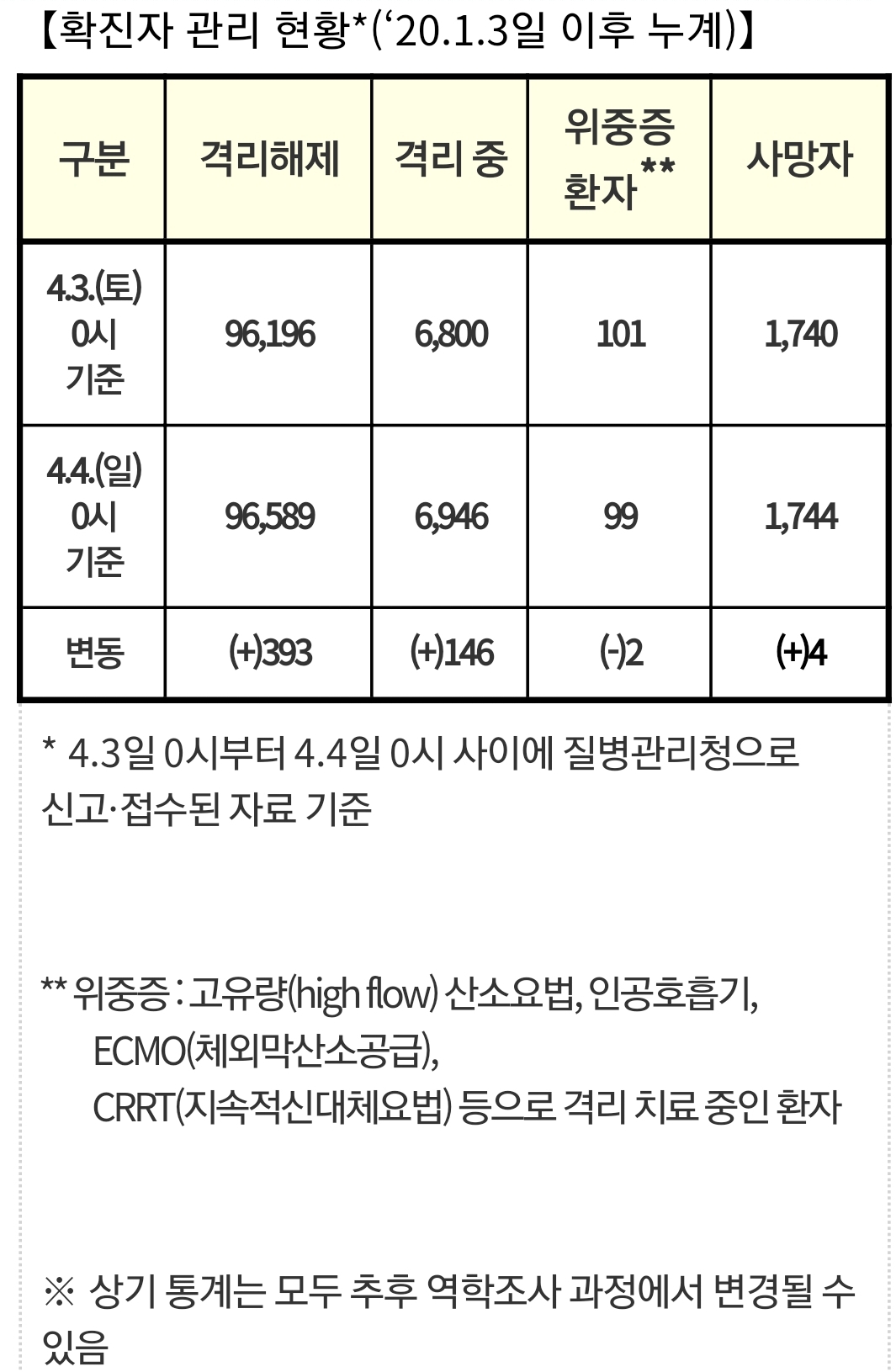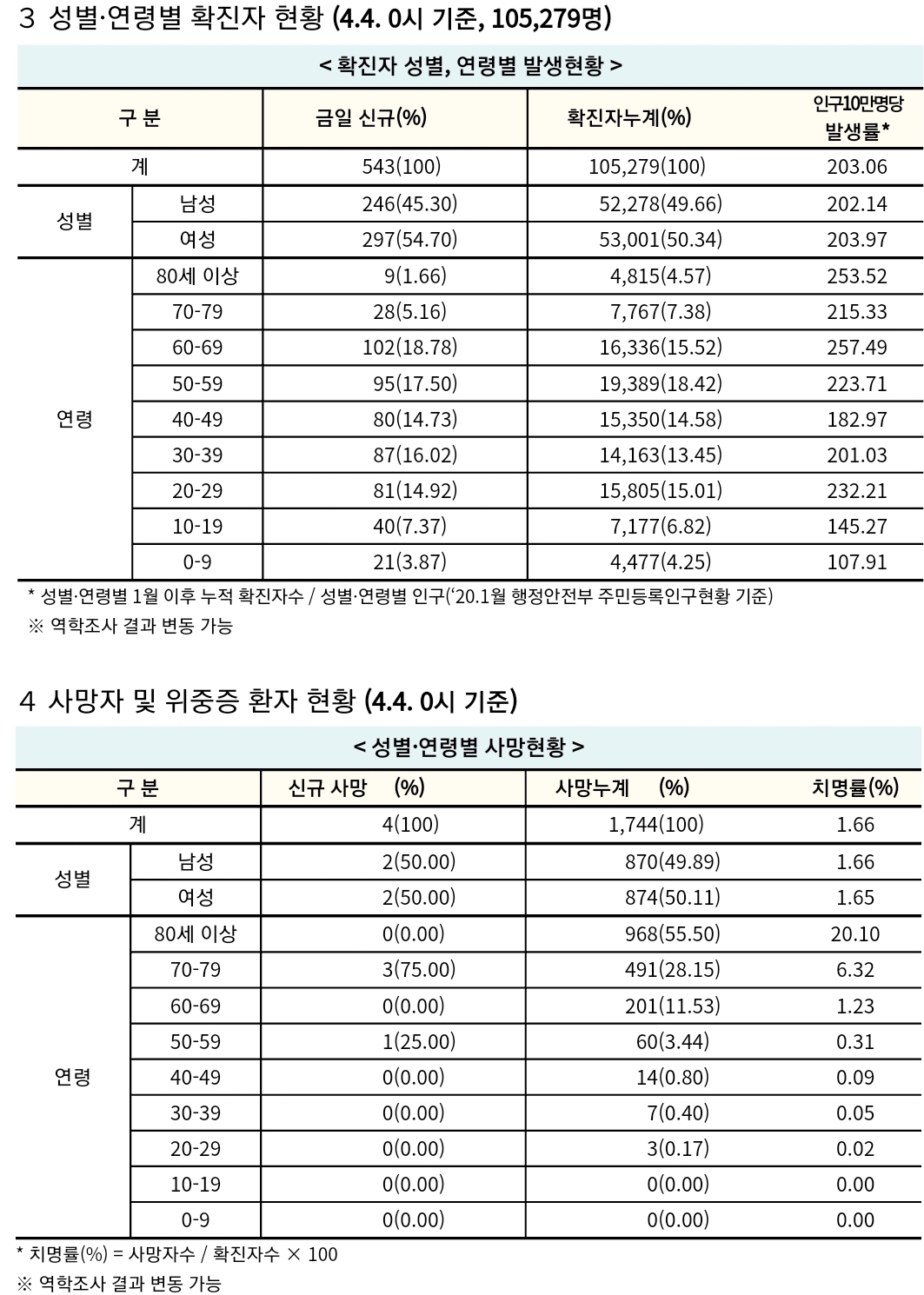 코로나19 집계(2021. 4.4. 0시 기준) 본문