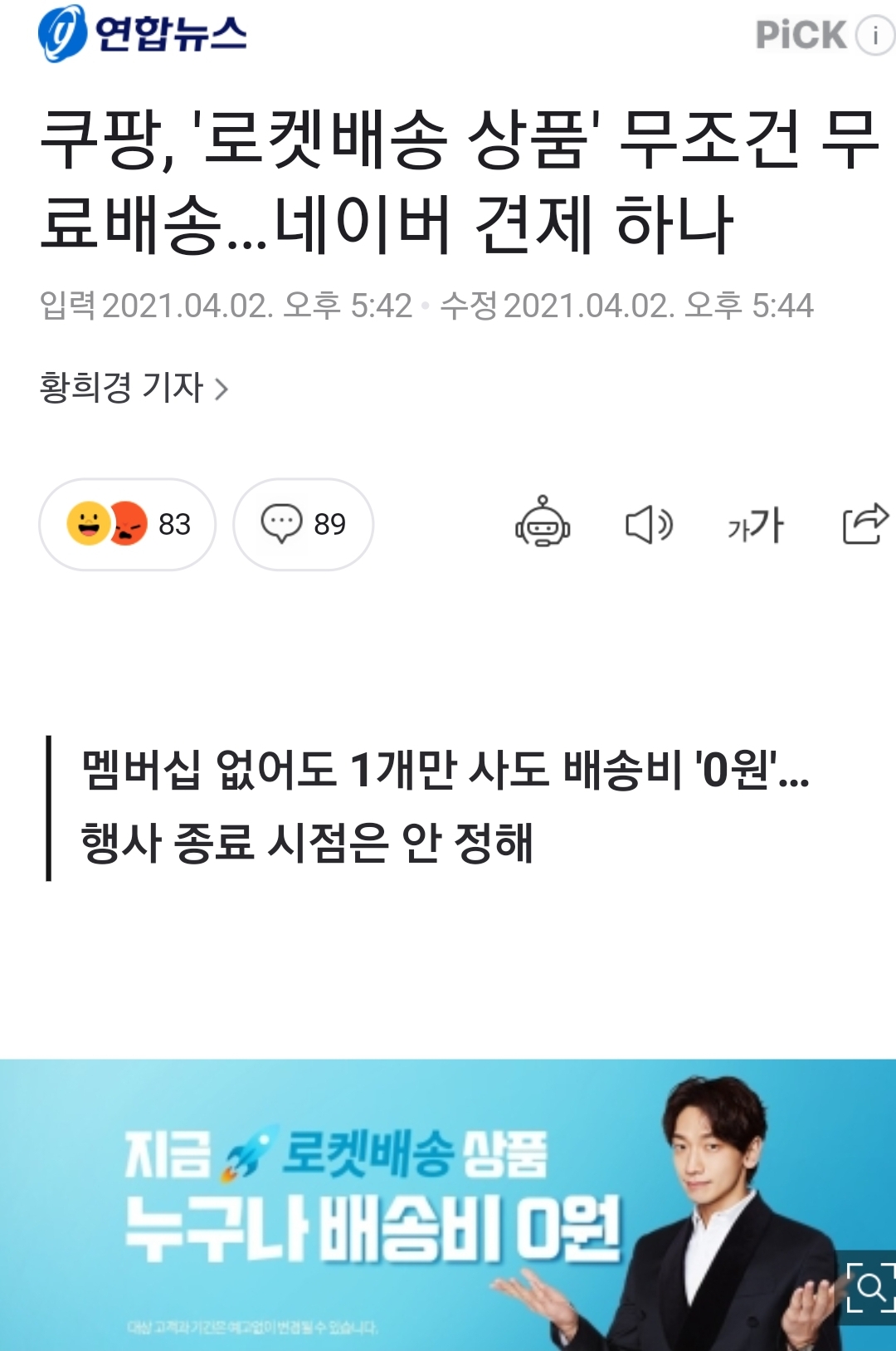 쿠팡, 로켓배송상품 완전 배송비무료(멤버십 비회원포함), 기간한정 본문