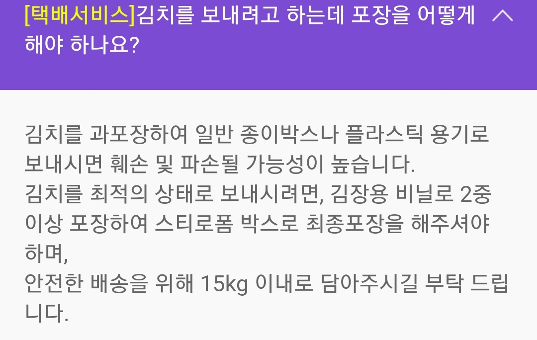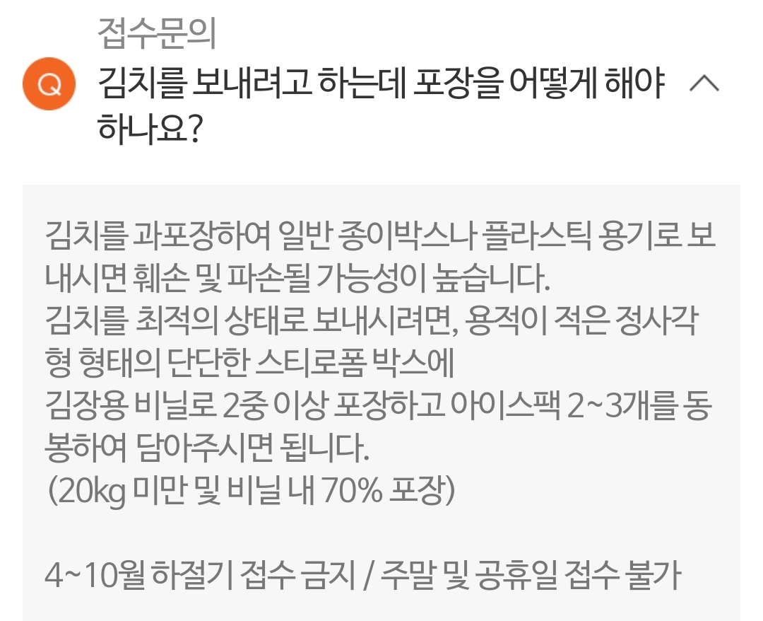 본격적 김장철.... 김장김치 안전하게 소포로 보내기 본격적인 김장철이 돌아왔...