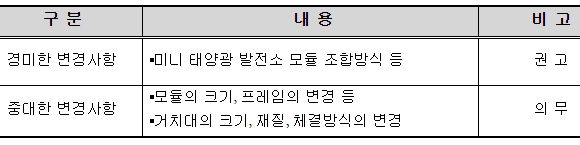 ① 서울특별시 태양광 미니발전소 공급제품의 중대한 변경사항이 있을 시에는 안전성 확보를 위한 시험 및 검사를 진행하여야 한다.