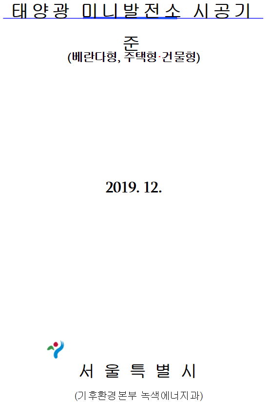 태양광 미니발전소 시공기준 (베란다형, 주택형·건물형) 2019. 12. 서울특별시 본문