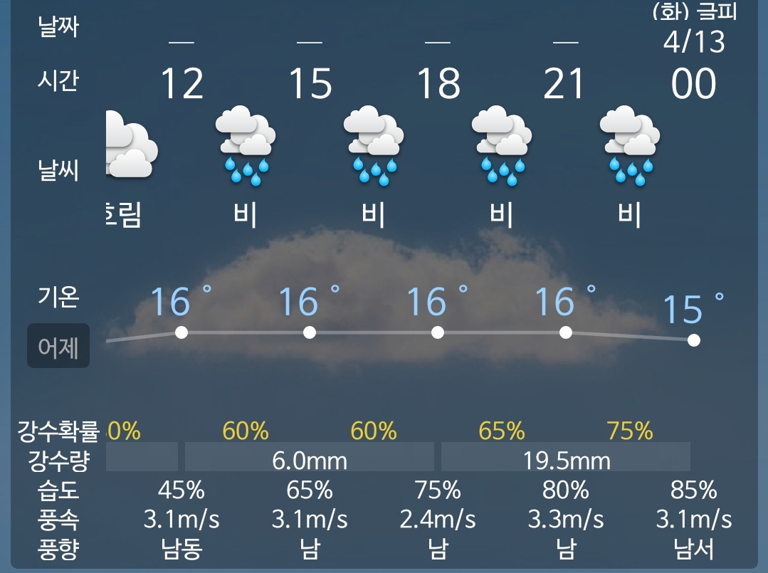 | 기상청 일기예보는 역시 잘 틀리네요. (0) | 2021.04.16 |