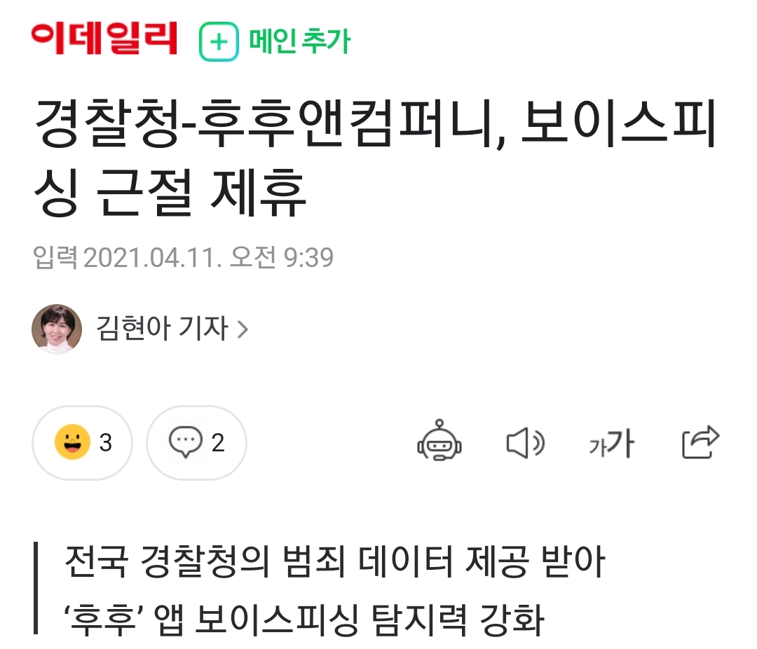 후후(전화앱), 경찰청DB를 제공받아 서비스 보완 본문
