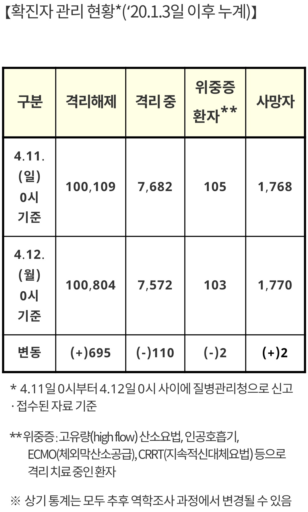 | 코로나19 집계(2021.4.11. 0시 기준) (0) | 2021.04.11 |