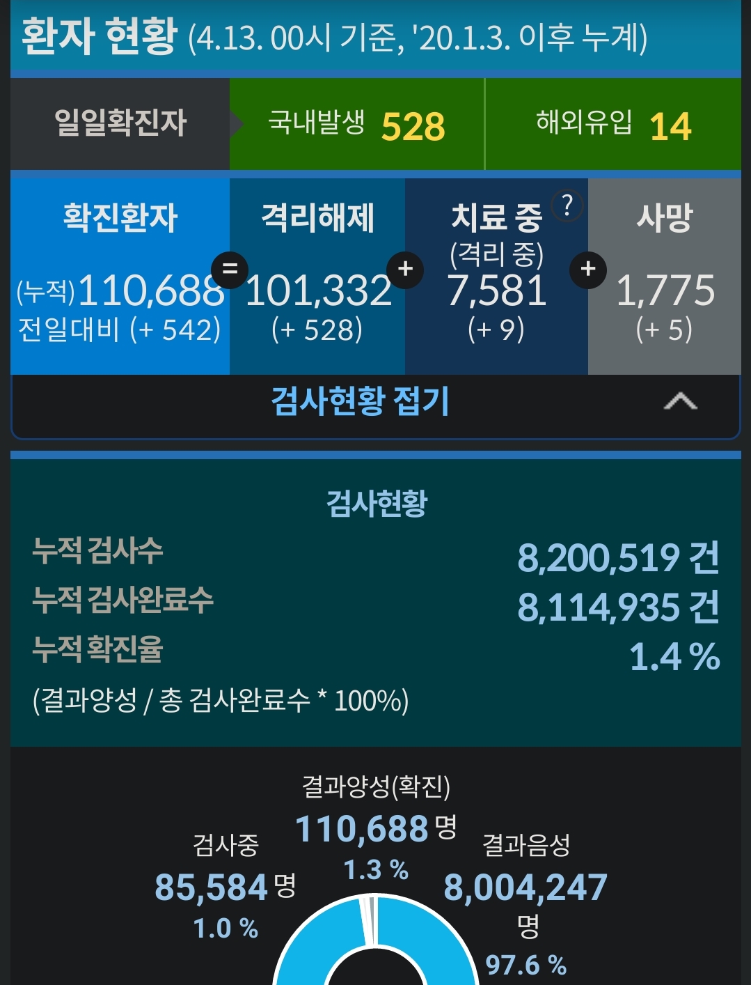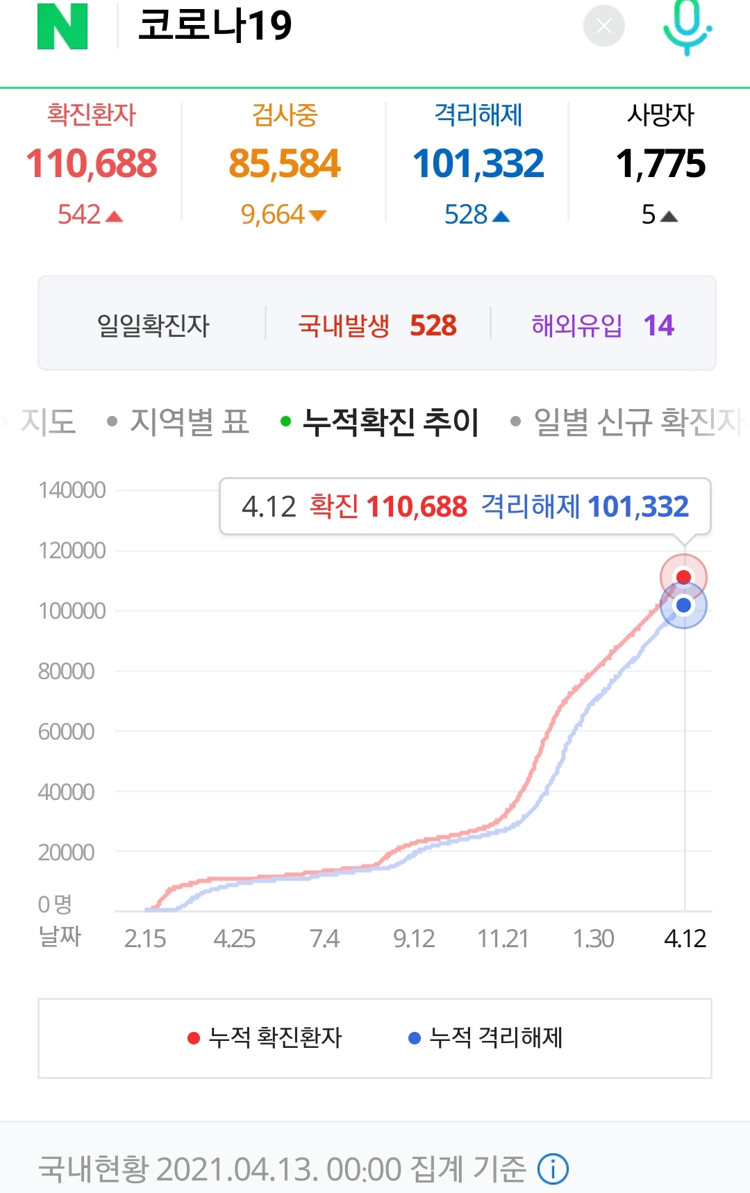 코로나19 집계(2021.4.13. 0시 기준) 본문