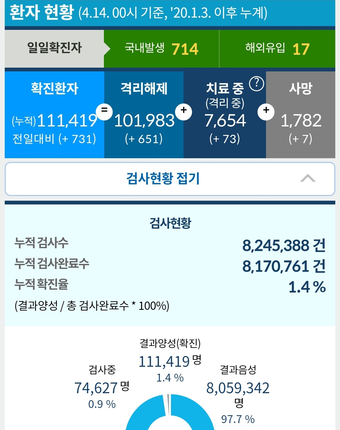 코로나19 집계(2021.4.14. 0시 기준) 본문
