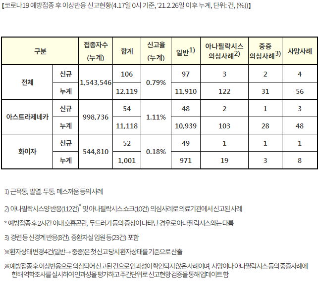 예발접종 150만 명이 넘었습니다. 부작용사망자는 56명.