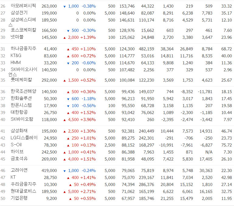 코스피 시가총액 1~50위