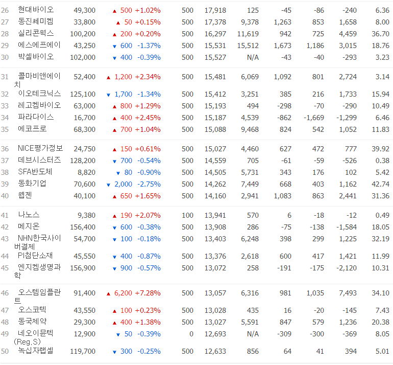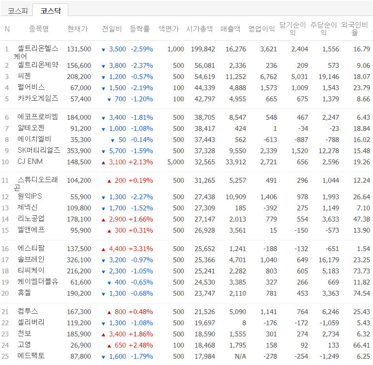 코스닥 시가총액 1~50위