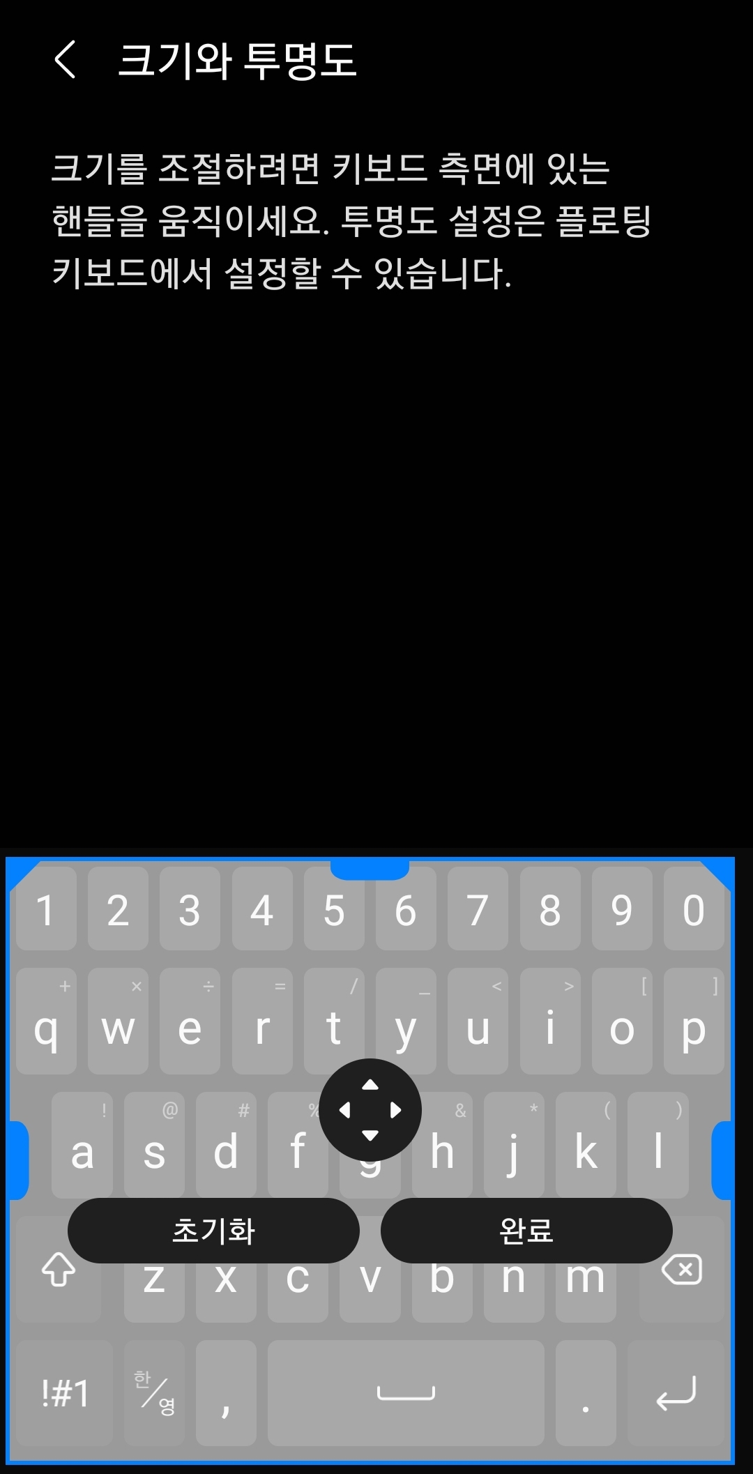 또, 한글자판, 영문자판, 특수문자자판에사 모두 개별설정할 수 있도록.