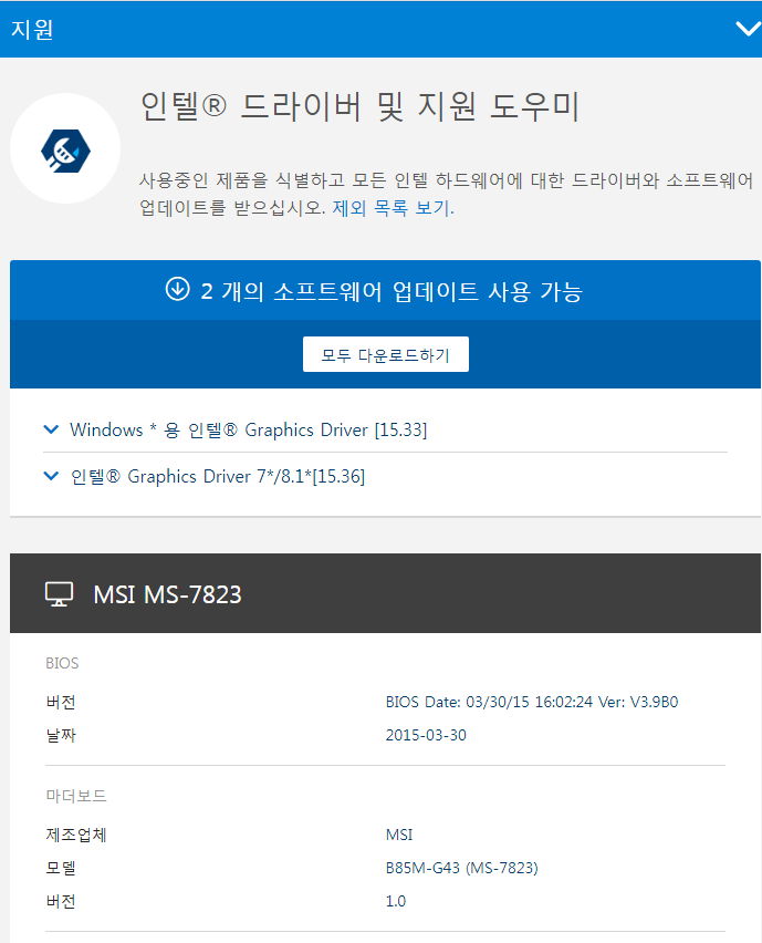 인텔® 드라이버 및 지원 도우미
