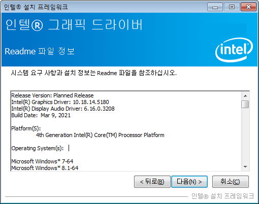 인텔® 드라이버 및 지원 도우미/:/ Intel 내장그래픽 드라이버 업데이트, 설치/:/ QHD 고해상도 설정 찾아본 것 본문