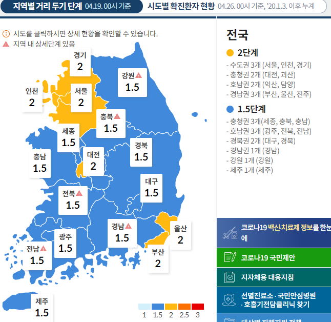 어, 대전은 1.5로 내린다고 하지 않았었나? 모르겠네요. 일단 여기는 2단계 표시.