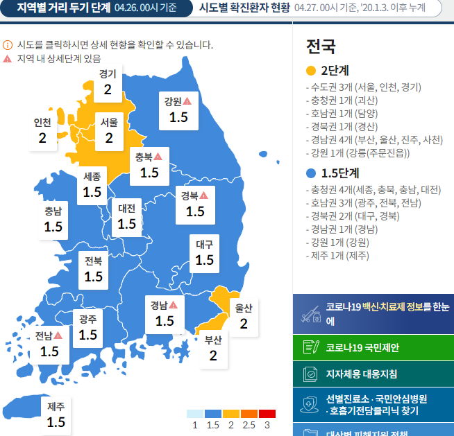 대전은 1.5단계입니다. 수도권과 부산울산은 2단계. 그 외 지역은 시군마다 2단계지역이 있습니다.