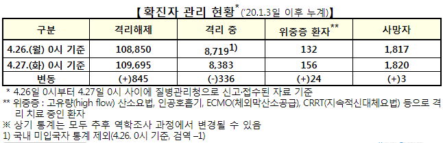 | 코로나19 집계(2021.4.26. 0시 기준)/:/ 500명 (0) | 2021.04.26 |