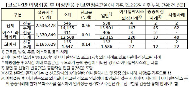 접종부작용의심 사망자는 62명. 심의결과에 따라 다시 줄어들 수 있습니다.