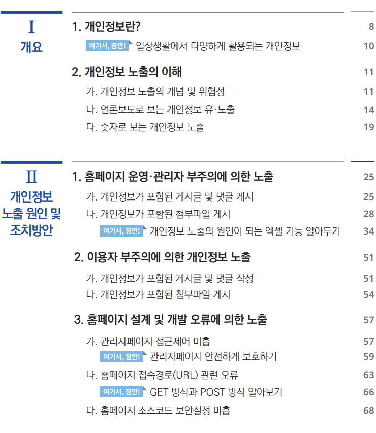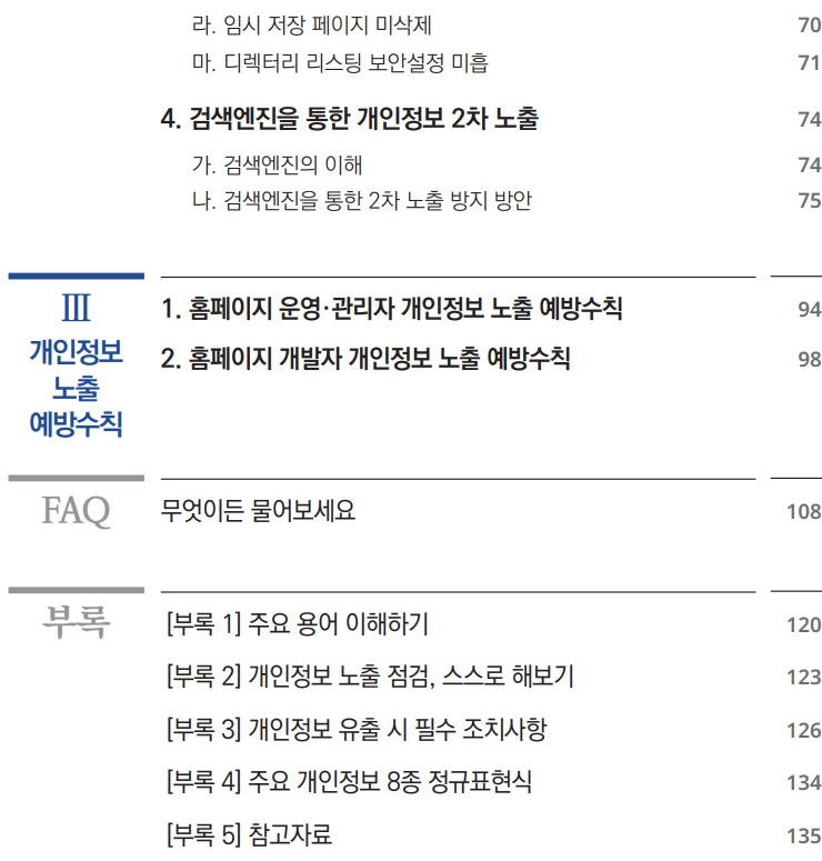 홈페이지 개인정보 노출방지 안내서 (꽤 실용적으로 작성된 문서. 특히 웹사이트 관리자와 개발자용)