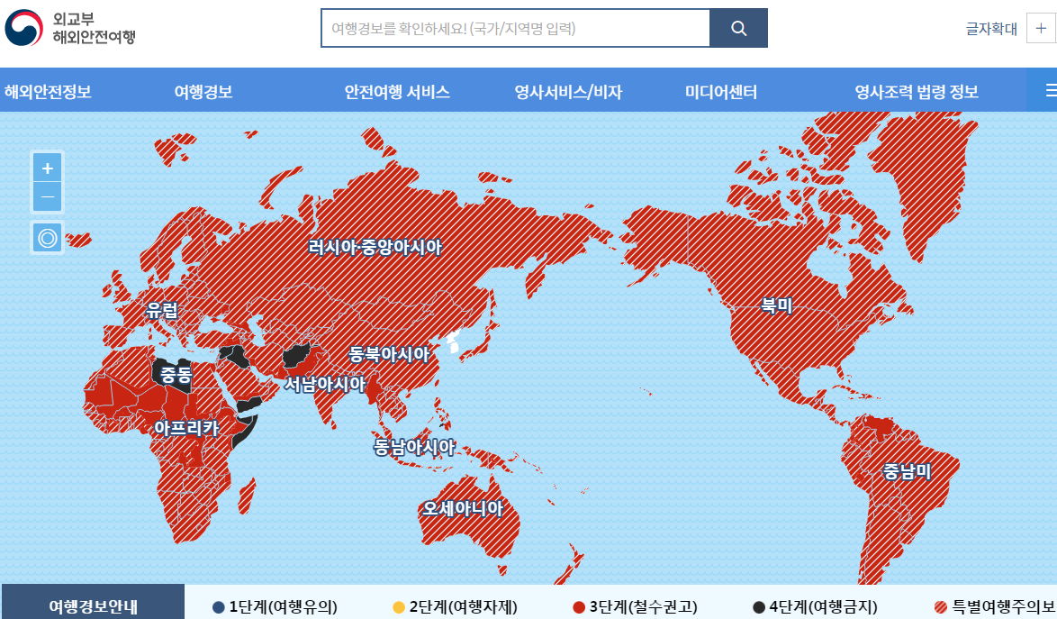 외교부, 해외안전여행 정보사이트 (여행유의, 여행자제, 철수권고, 여행금지) 본문