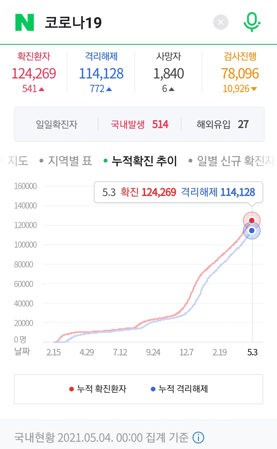 코로나19 집계(2021.5.4. 0시 기준)/:/541명 본문