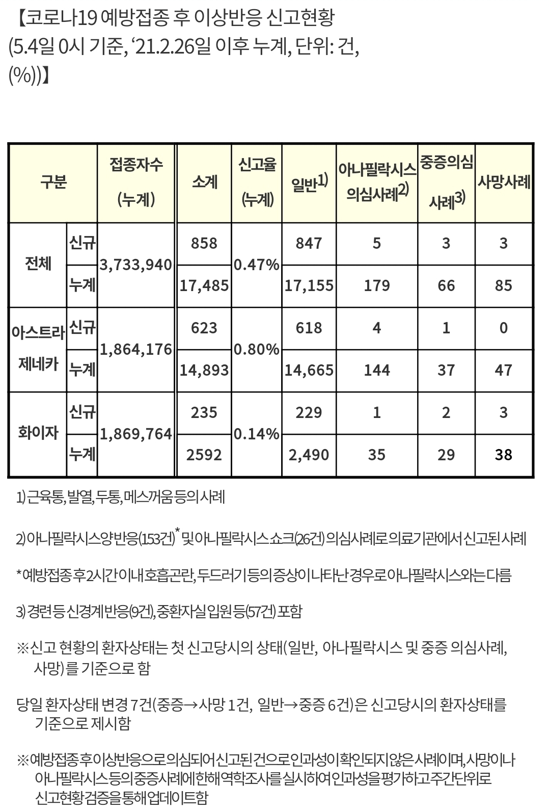 코로나19 집계(2021.5.6. 0시 기준)/:/ 에방접종 부작용(이상반응) 심의 결과 (0) | 2021.05.06 |