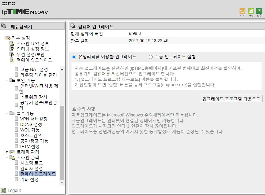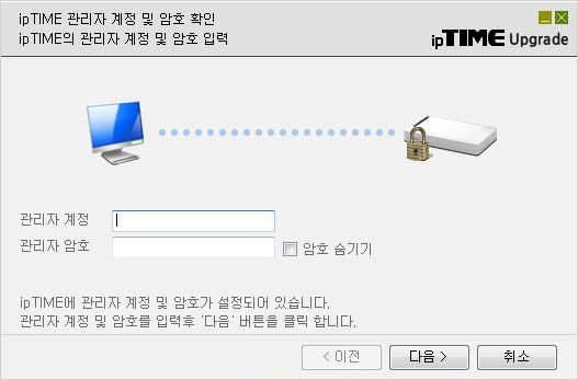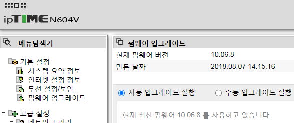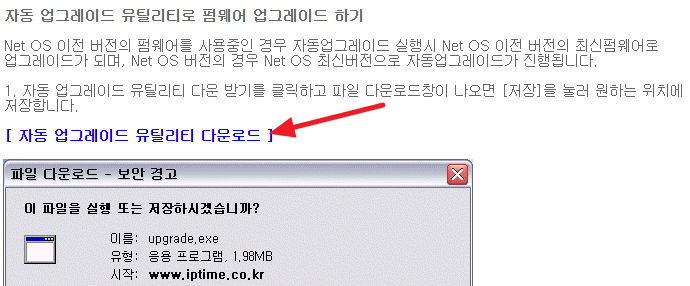 iptime.com 사이트에서 자동업그레이드 프로그램을 받아서