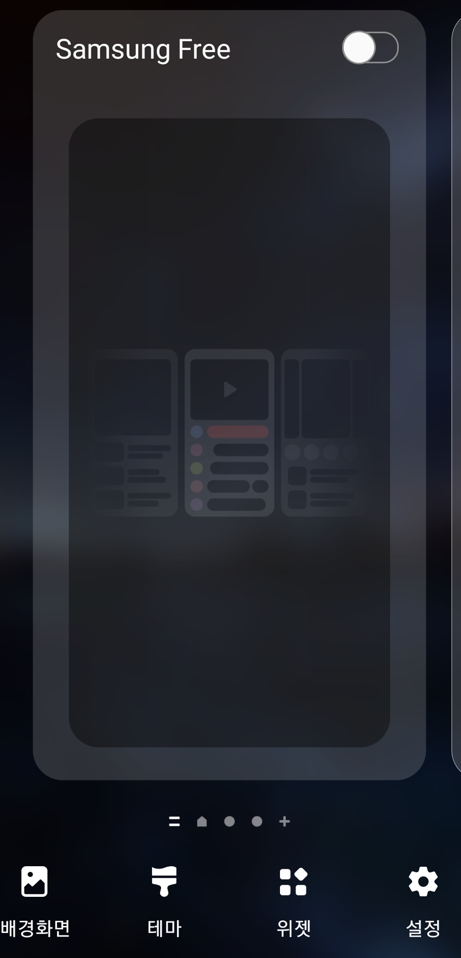 홈화면 바탕을 꾹 누르고 있으면 위젯붙이기 등 설정화면이 나오는데, 거기서 왼쪽으로 가면 프리 on/off 슬라이드가 있다.